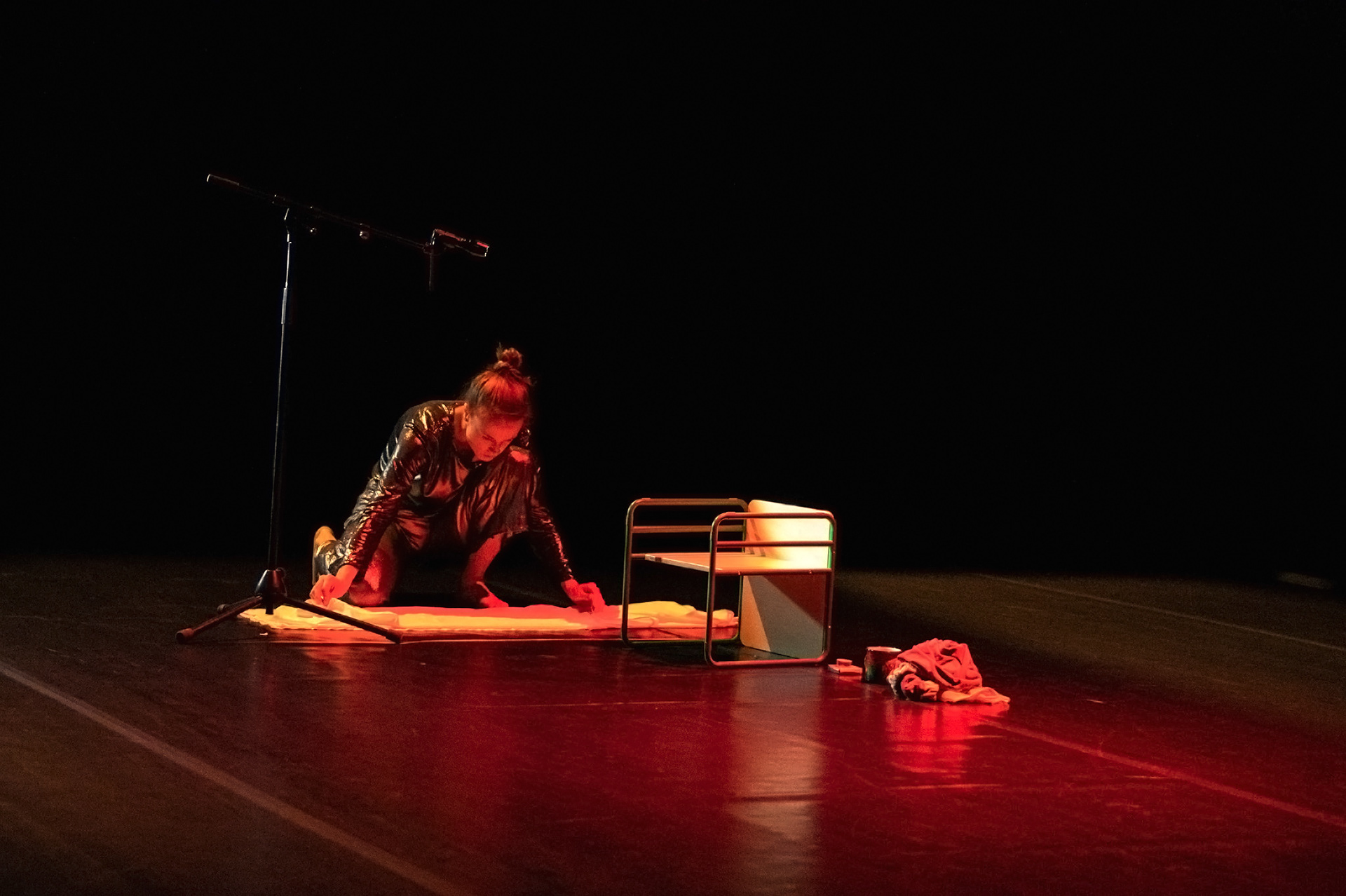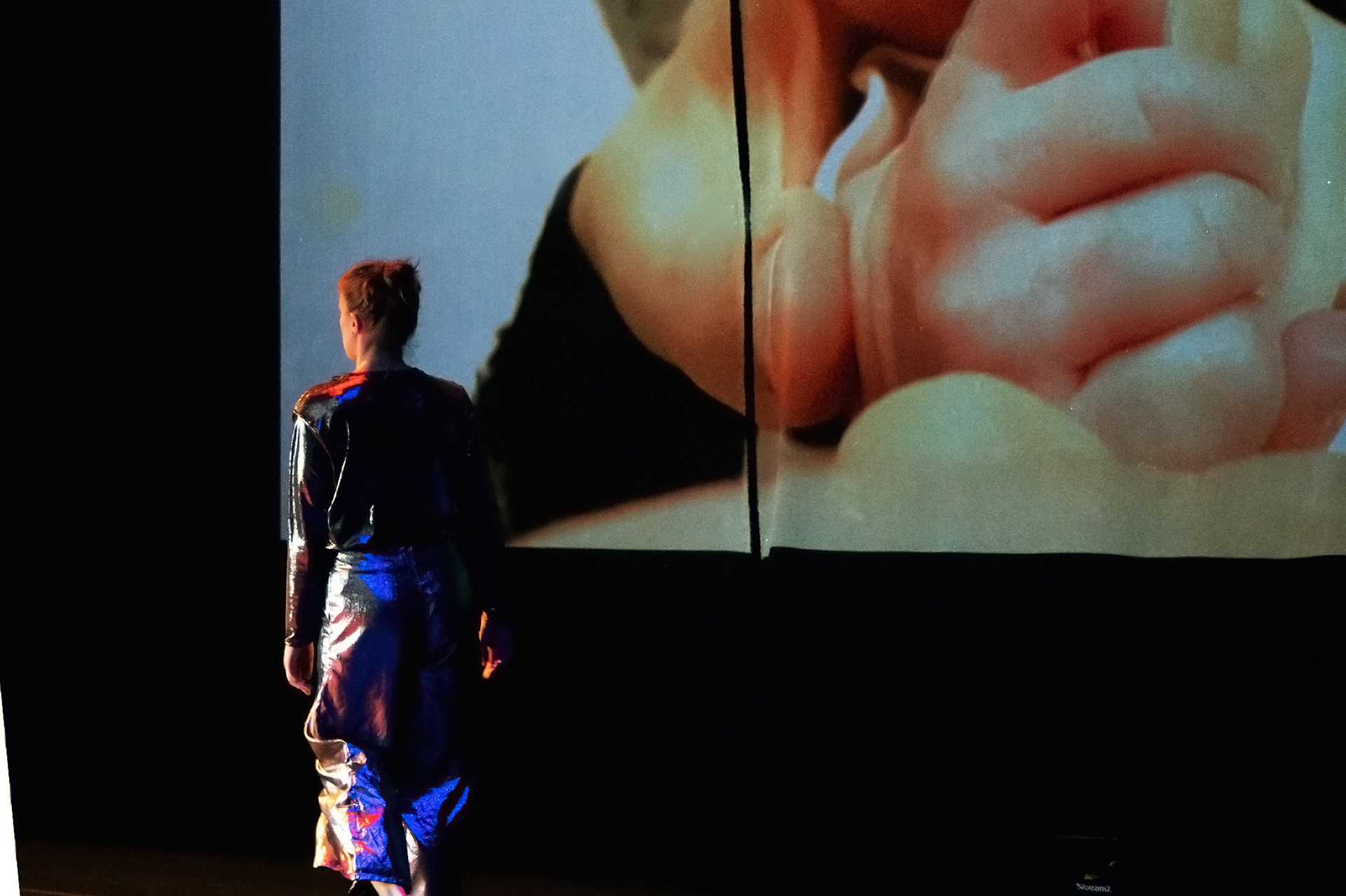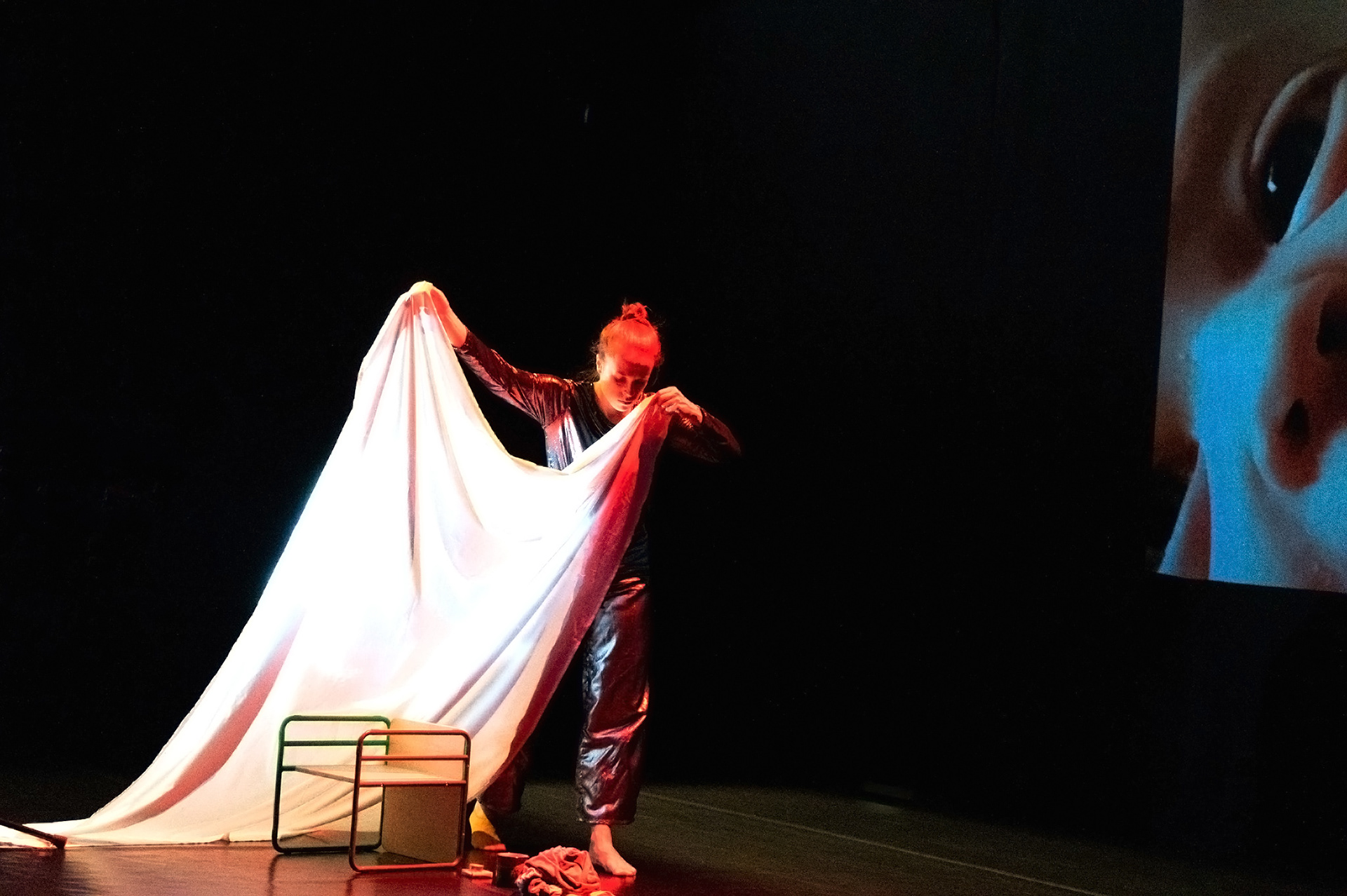 The performance uses footage from the archive of the Al Jazeera media source, documenting the situation after 7.10.2023 in the Gaza Strip in Palestine.